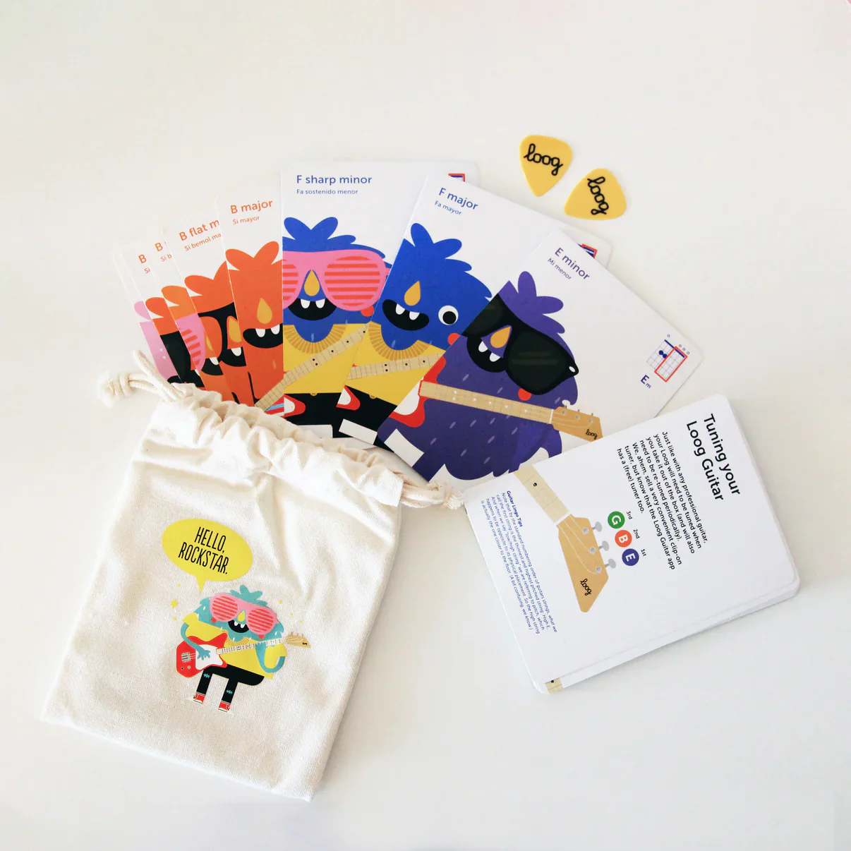 - Standard tuning: learn on a Loog, play any guitar.