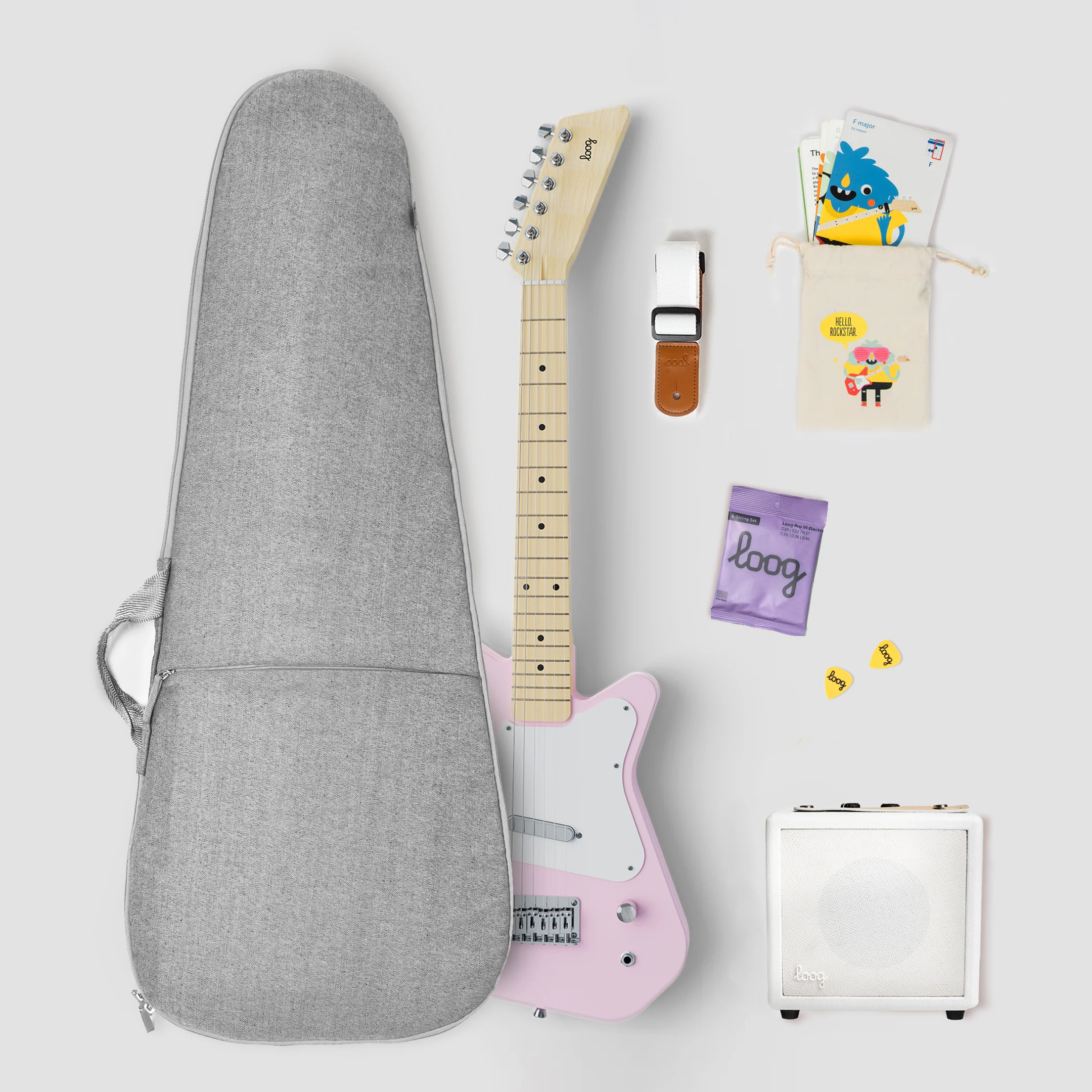 - Includes chord flashcards, free video lessons, and full access to the Loog Guitar app.