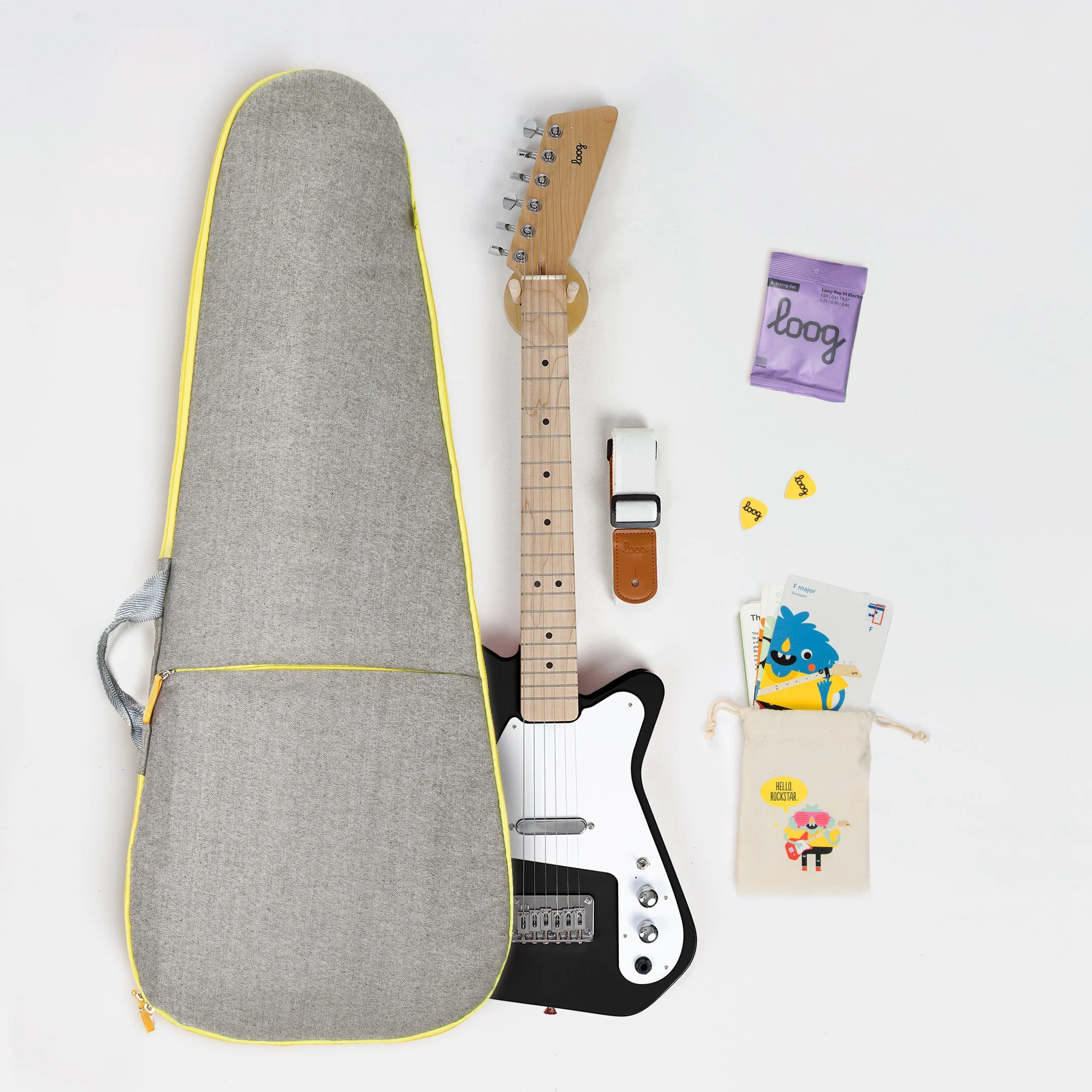 - Includes chord flashcards, free video lessons, and full access to the Loog Guitar app.
